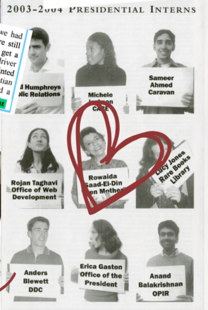 Rowaida Saad Eldin, former executive director of the Office of the President but known to the interns as the beloved "Den Mother" of the program, put her attention, care and generosity into making the experience something meaningful to both the interns and their surrounding community.